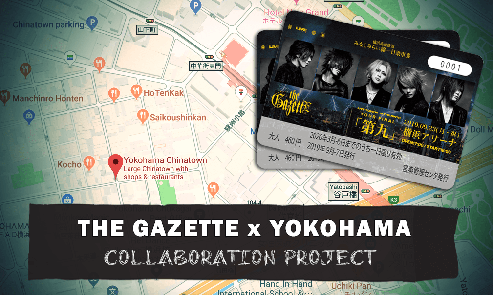 In preparation for THE NINTH TOUR FINAL, the GazettE has announced a collaboration with the city of Yokohama. In addition to special menu items to appear in Chinatown (the purchase of which will also net you a special postcard), there will be a stamp rally and a limited number of GazettE-themed day passes available for the Minatomirai Line.